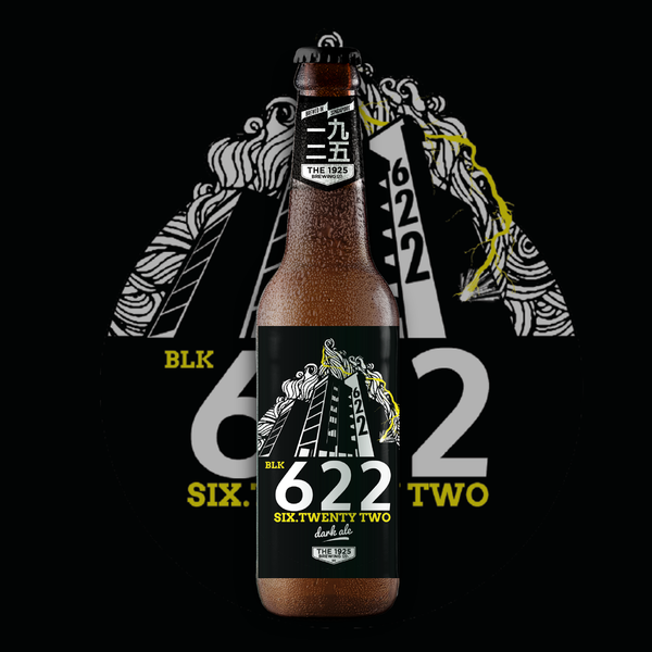 BLK622 (5.2% ABV) actually refers to the Block 622, the flat which our grandfather used to stay. It was also the house in which we all grew up in. The body is jet black with a smooth creamy foam head. Flavours are bold and rich, with hints of dark chocolate, coffee and caramel.